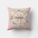 Pretty monogram throw pillow featuring a name and script surname initial that is framed by a delicate watercolor rose garland floral on a pink geode agate background. Personalise to create a special keepsake gift to treasure! Designed by Thisisnotme©