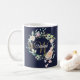 Pretty monogram mug, featuring a beautiful script name with a complimenting gold initial that is framed by a delicate watercolor floral rose garland on a navy blue background. Personalise to create a special keepsake gift to treasure! Designed by Thisisnotme©
