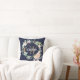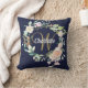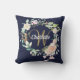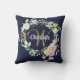 Pretty monogram throw pillow featuring a name and script surname initial that is framed by a delicate watercolor rose garland floral on a navy blue background. Personalise to create a special keepsake gift to treasure! Designed by Thisisnotme©