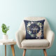 Gold Script Monogram Roses Floral Navy Blue Cushion