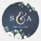 Gold script navy white floral monogram wedding classic round sticker