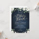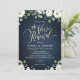 Modern faux gold "the vow renewal" calligraphy and watercolor white floral eucalyptus greenery on dark navy blue background, elegant and stylish, great for greenery rustic wedding, botanical garden wedding, boho floral wedding in summer and winter.