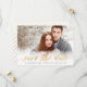 This elegant save the date features shimmering script in faux foil with a striped backer. Upload your own photo and customise the information to include your wedding details.