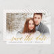 This elegant save the date features shimmering script in faux gold foil with a striped backer. Upload your own photo and customise the information to include your wedding details.