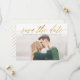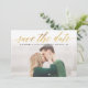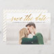 This elegant save the date features shimmering script in faux foil with a striped backer. Upload your own photo and customise the information to include your wedding details.