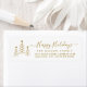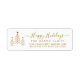 Elegant, Modern Gold and White Hand Lettered Christmas Family Return Address Labels. Featuring a pretty hand-written script with saying "merry christmas" in swash-tail font, pine trees dodle with little hearts. Great for Christmas holiday season, easy to personalise them with your names and return address info.