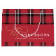 Gold script red plaid tartan rustic Christmas Larg Large Gift Bag