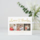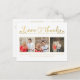 Gorgeous faux gold foil typography on the front of this designer postcard which you can upload into with 3 of your own engagement/wedding photo portraits. Easily and quickly personalise this designer professionally printed thank you postcard here and now by just typing over the example text and adding your own photographs. Elegant, chic, simple and classy gold script/cursive typography