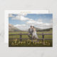 Gorgeous faux gold foil typography on the front of this designer postcard which you can upload into with your own engagement/wedding photo portrait. Easily and quickly personalise this designer professionally printed thank you postcard here and now by just typing over the example text and adding your own photograph. Elegant, chic, simple and classy gold script/cursive typography.