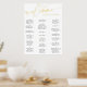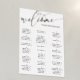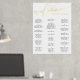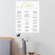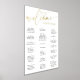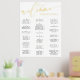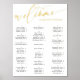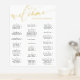 Elegant and minimalist seating chart for a wedding or any type of event. Welcome is written in a gold foil script, with please find your seat beneath. Then three columns of names where you can write your guests' names and table number in black for readability.