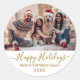 Gold Script White Family Photo Happy Holidays Classic Round Sticker
