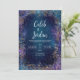Invite your guests to an event of celestial opulence with this breathtaking luxury cosmic wedding invitation. The entire design is a highly intricate, full-bleed background that combines the mystery of the night sky with baroque elegance. The central text area is a deep, dark expanse of midnight blue and teal, sprinkled with countless twinkling blue stardust motes, giving the effect of looking into the infinite depth of space. Framing this dark centre is an extraordinary, dense border of shimmering faux gold baroque scrollwork and delicate, lace-like filigree. This gold is interwoven with beautiful abstract shapes in rich indigo, sapphire, and deep violet hues, giving the border an exotic, floral-inspired complexity. The overall style is fantastical, luxurious, and mystical, perfect for couples planning an enchanting evening wedding, a masquerade ball, or any event emphasizing cosmic beauty, dramatic jewel tones, and refined, opulent detail. This design is perfect for celestial wedding invitations, luxury gala event announcements, starry night engagement party invites, or sophisticated winter solstice stationery. The captivating, detailed background is also a unique choice for a high-end jewellery brand advertisement or an exclusive New Year's Eve party announcement.