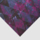 A gold scrollwork pattern overlays a background with purple and blue diamonds with writing. Perfect for decoupage art, paper crafts, or gift wrapping. Make sure to check out the matching gift bag!