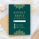 Gold Sea Green Mehendi Henna Indian Wedding RSVP Card
