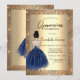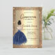 Gold Sequins,Blue Dress Girl Quinceañera Invitation