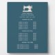 Understated design displays your services, price list or business information beneath an illustration of a vintage sewing machin in faux gold over a teal background and your name or business name.