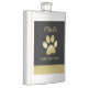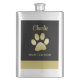 Gold Shiny Dog Paw on black background Hip Flask