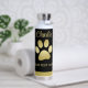 Gold Shiny Dog Paw on black background Water Bottle