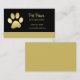 Gold Shiny Dog Paw on black Pet Grooming Service Business Card