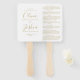 The fans are very pretty and easy to assemble. We utilized the original template and just inserted the names of our wedding party. After the product arrived we noted they read,”Made of Honor” rather than “Maid of Honor”. Upon re-checking the website we noticed the typo is in the original template and was not a mistake on our end. It is too late to return because our wedding is in just a few days but if we had time we would certainly request an exchange. See review above regarding typo.