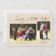 Send New Year's greeting to your family and friends with this 2 photo card. The design offers text in gold, silver and bronze on a light tan background. The word "happy" appears in an elegant script.