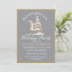 This elegant holiday party invitation features a collection of gold Christmas trees on a white and gold background. Perfect for inviting friends and family to a festive gathering, the sophisticated design is sure to impress your guests and create a warm, festive atmosphere.