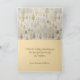 A winter wonderland of gold and silver Christmas trees parade over an off-white background in this vintage watercolor painting. Sparkly gold snowflakes fall over the lovely grouping of holiday pines. Editable text includes "Merry Christmas" on the front and additional greetings inside the folded card. Be sure to edit the example "from" names and year. On the inside of this holiday card is a matching pattern of pine trees.