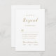 Romantic wedding rsvp card feature stylish script and elegant font event details in gold colour, modern and simple, great for minimalist formal wedding, traditional classic wedding, modern simple wedding.