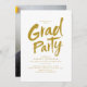 Modern brush script design Graduation invitation in gold and white, with photo in the back, simple and unique. Custom it with your own photos and grad party information.