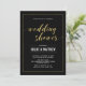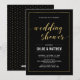 Celebrate your special day with this stylish modern wedding shower invitation. This design features a chic gold textured typography with a black background.