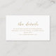 Romantic wedding details card feature stylish script and elegant font event details in gold colour, modern and simple, great for minimalist formal wedding, traditional classic wedding, modern simple wedding.