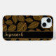 Make this case a personalised birthday, Mother's Day, or Christmas gift for yourself or for a special someone. The design features a gold skeleton leaf background over black with the custom name set vertical along the right side. Personalise the text, remove one or all the text or edit using the design tool to select a font style, size, and colour you prefer.