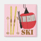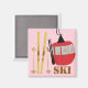 Gold Skis And Poles | Retro Ski Lift Holiday Pink Magnet