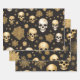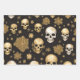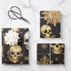 Gold Skulls and Snowflakes Gothic Christmas Wrapping Paper Sheet