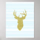 Baby boy nursery wall art in light pastel mint green and white tribal stripes pattern with gold glitter effect deer with antlers. Perfect to decorate a toddler or children's room or any room with gold and blue theme.