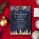 A modern, chic and elegant corporate gold typography navy blue watercolor Christmas party invitation with gold snow and gold pine tree forest on navy blue watercolor
