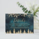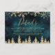 Time to celebrate your winter wonderland wedding theme with this luxury gold glitter snowflakes sparkles and gold glitter pine tree forest details cards on an elegant festive dark teal green burgundy watercolor background, featuring a modern cool script font typography.