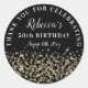 Gold Snowflake Glitter on Black Fiftieth Birthday Party Round Sticker Favour Label - Add your name, birthday being celebrated, and date of the birthday party. A winter glam design that pairs a decorative bold font with handwritten calligraphy and is topped off with a fun snowflake shaped glitter accent. (faux glitter)