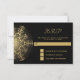 Gold snowflake on black winter wedding RSVP reply Card