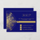 Gold snowflake on blue winter wedding response/reply RSVP card that features a golden snowflake on blue background. This personalised design is a fully customisable template and is part of a wedding set perfect for a winter or Christmas wedding.