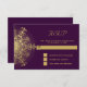 Gold snowflake on purple winter wedding elegant RSVP response/reply card that features a golden snowflake on dark eggplant purple background. This personalised design is a fully customisable template and is part of a wedding set perfect for a December winter or Christmas wedding.
