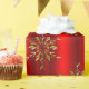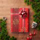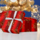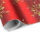 An elegant red Christmas gift wrap, featuring a pattern of shiny gold snowflakes (or Christmas stars) scattered across a metallic red background to add some elegance and style to your Christmas gift wrapping this December.