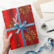 Gold Snowflake Stars on Red Christmas Wrapping Paper