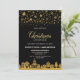 A stylish black with gold snowflakes Christmas dinner party invitation for you to invite your friends and loved ones to celebrate the festive season.