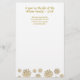Christmas letter paper with optional message text. Gold snowflakes design with flakes along the bottom of white paper - with upgrade selections. Reverse is gold with snowflake pattern. All text is in gold colour with a title for the family name and year. An optional template for a message is provided in gold calligraphy print, or delete that text to order blank and hand-write your letters. Order in bulk and send to friends and family with Christmas cards. If you type your own message, keep all text away from the edge of the paper.