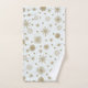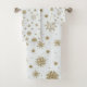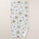 Christmas Classic gold glitter snowflakes and dots glow white pattern, filled with multiple unique gold stars, dots and snowflake geometric shapes, faux shining gold glitter and glowing white colour, white background. This gold snowy sky evening winter feel snowflakes artwork, is perfect for winter season Christmas holidays decor.
