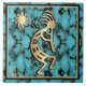Brighten Your Home with this Unique "One of a Kind" Southwest Kokopelli Tile! It Features a Southwest Kokopelli in Gold and Black Playing the Flute and Dancing Under the Sun on a Turquoise, Black and Gold Background!