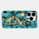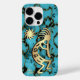 This is a Unique "One of a Kind" Southwest Kokopelli Cell iPhone Case! It Features a Gold and Black Kokopelli Playing the Flute and Dancing Under the Sun on a Turquoise, Black and Gold Stone Background!