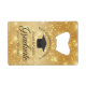 Elegant faux gold sparkle graduation party bottle opener for a high school or college graduation celebration with your custom school name and class in the centre. Personalise this chic, modern graduate accessory.