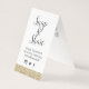 Social media sharing hashtag sign or mini card with a sparkly soft gold glitter stripe at the bottom. This MINI TENT CARD (same size as a business card) is perfect for any gold or glitter theme wedding, bat mitzvah, sweet sixteen, quinceanera, bridal shower, baby shower, birthday party or anniversary party. • • • • • • • Click CUSTOMIZE to change background colour, font and text colour, or arrange the elements as you like including adding or removing social media icons.• • • • • • •